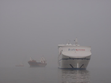 Ohne die Radarberatung der Verkehrsleitzentrale wäre während dieser extrem vermindertern Sicht und bei dem vom Schifffahrtsverkehr sehr stark frequentierten Seegebiet kein sicheres Befahren möglich. Auch wir bekommen unsere Kursempfehlungen zur Querung des Fahrwassers hin zum Yachthafen der Segler-Vereinigung, wo wir am frühen Vormittag festmachen. Nach dieser volle Aufmerksamkeit erfordernden Fahrt, nehmen wir uns während des einsetzenden Flutstroms eine Auszeit. Ab der späten Mittagszeit werden wir den westsetzenden Gezeitenstrom wieder für uns nutzen.