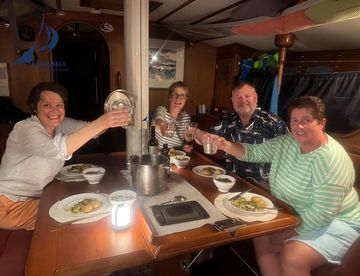 Wir queren die Baie Fort-de-France und steuern unseren Ankerplatz südlich von St. Pierre an. Um 15:10 Local Time fällt der Anker, Distanz 29 sm. Das leicht graue Szenerio hält uns nicht davon ab, nach dem Anleger ins kühle Nass zu springen. Am Abend bereiten wir gemeinsam Fisch zu und genießen einen schönen Abend im Salon.