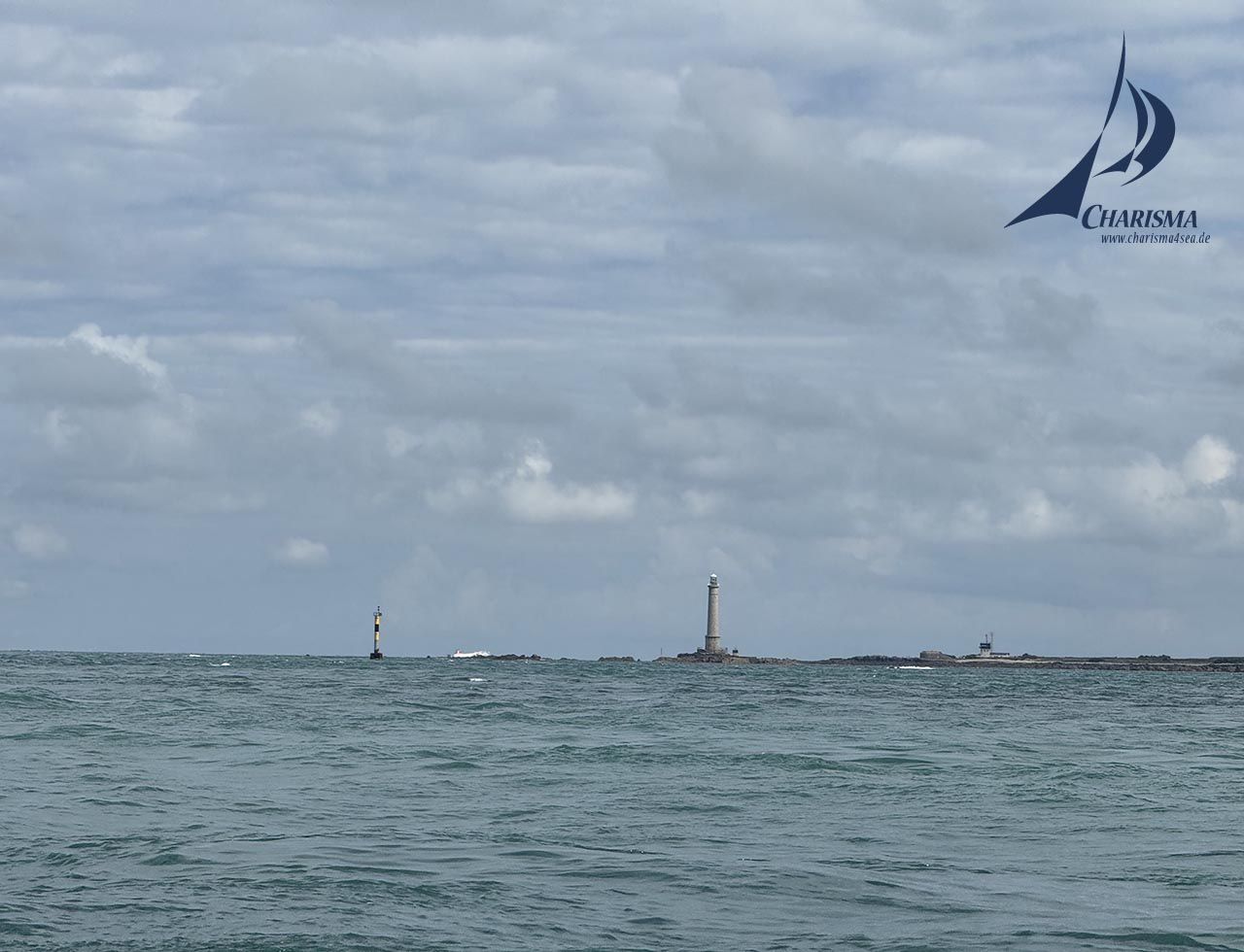 Um 11:20 UTC+2 (HW Dover -2,5) verlassen wir Cherbourg. Unter Motor führt unser Kurs entlang der Küste gen WNW. Nach 3 Stunden passieren wir die Untiefentonne Nord Basse-Bréfort.