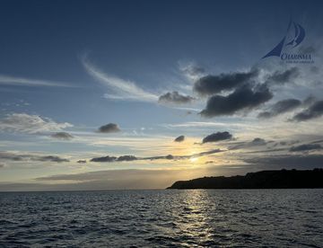 Mit südlichem Kurs segeln wir entlang der Westküste rund Corbière in eine sonnige Abendstimmtung. Um 19:00 UTC+2 fahren wir eine Halse und steuern mit östlichem Kurs die Ankerbucht St. Brelade‘s Bay am. Um 19:50 fällt der Anker - Distanz 56 sm.