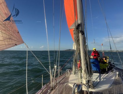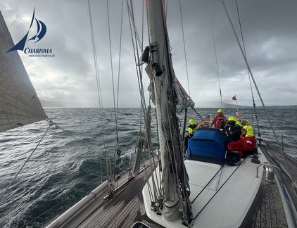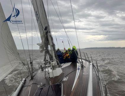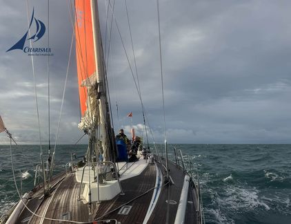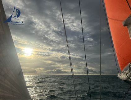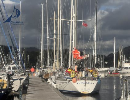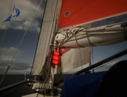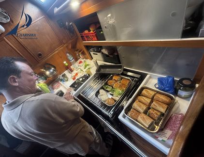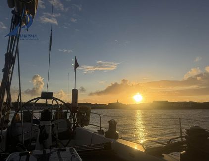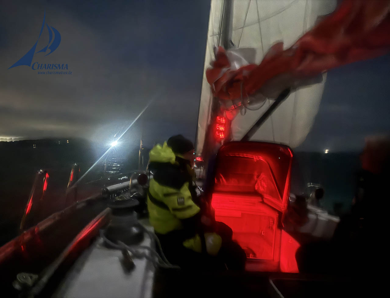 Angesichts der bevorstehenden Wetterlage schlagen wir im Hafen das Trysegel an. In der Pantry werden Sandwiches für den Abend vorbereitet. Um 19:40…