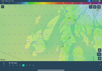 Wir legen um 09:10 Uhr UTC+1 in Ardfern ab (HW Dover). Das uns mittlerweile gut bekannte Sturmtief bringt heute SW-Wind der Stärke 5 inkl.…