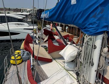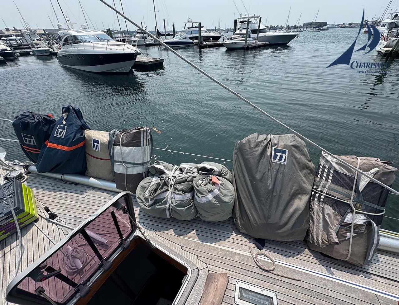 Zur Vorbereitung des Transatlantic Races 2025 drehen wir die CHARISMA einmal auf links. Alles kommt an die frische Luft: Segel, Bodenbretter, Polster, Pantry-Kisten und mehr.