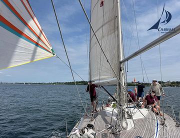 Die Sonne scheint, es weht eine leichte Brise – wir geben die Leinen los für einen Trainingsschlag in der Narragansett Bay. Wir cruisen die Startlinie vor Castle Hill ab, fahren das Hamburger Manöver, wenden und halsen und setzten den Spinnaker – läuft! Wir kehren an unseren Liegeplatz zurück.