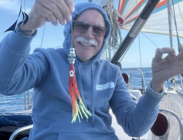 Chef de Cuisine Sabine und Sous-Chef Krischan bereiten das Abendessen zu. Die Bedingungen sind nicht einfach – die CHARISMA schlingert ohne Fahrt durch die Atlantikdünung. Das Bauernfrühstück mit Würstchen und Gurkensalat erfordert vollen Einsatz der Pantry-Crew und schmeckt im sonnigen Cockpit vorzüglich. Nach einem Mittagsschlaf und dem Essen geht der Skipper selbst ans Steuer. Und siehe da, die CHARISMA läuft wieder :) Mit 2 kn FüG gleiten wir durch das leicht gekräuselte Wasser und setzen erneut den Spinnaker - Kurs Europa.