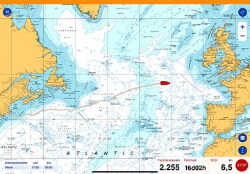 Im Laufe einer Steuerwache reift die Erkenntnis: Welle ist nicht gleich Welle. Es gibt die Aufmerksamkeitsheischenden, die mit ihren weißen spritzenden Schaumkronen keck an die Bordwand klatschen. Die wollen nur spielen. Und dann gibt es die anderen, die aus der Tiefe des Atlantiks kommen, die CHARISMA meterhoch anheben, unter ihr durchrollen und als Wellenberg vor uns brechen. Die muss man als Steuermann gut im Auge bzw. in den Beinen haben. Dann heißt es das Steuerrad festhalten, Blick nach vorne und nur dann Ruder geben, wenn der Bug nach Steuerbord oder Backbord auswandert. So reiten wir Welle für Welle gen Osten.
