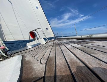 Nach einem gemütlichen Frühstück machen wir Frühsport und hieven den Anker auf. Nur unter Vorsegel cruisen wir – noch in der Landabdeckung –rund um die Nordwesthuk von Sejerö. In der freien See des Kattegats weht es E-NE 5, so dass wir das Großsegel ins erste Reff setzen.