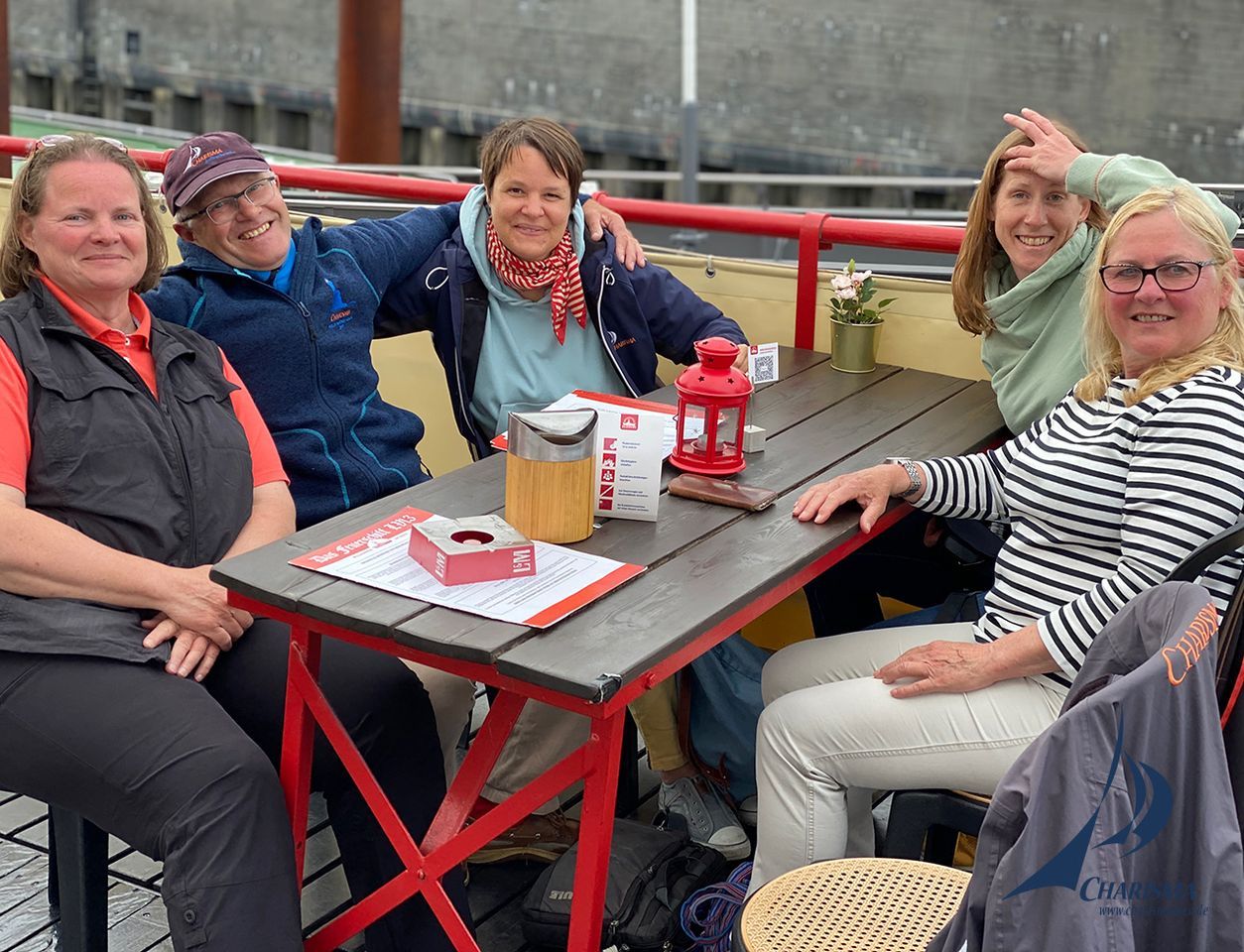 Nach unserem Segeltörn entlang der deutschen Nordseeku?ste liegen 275 sm in unserem Kielwasser. Unsere Erlebnisse war geprägt durch die Vielseitigkeit des Gezeitenreviers: den Revierfahrten auf der Elbe mit viel Schifffahrtsverkehr samt Nachtfahrt, das Hochseesegeln durch die Deutsche Bucht hin zu den Nordfriesischen Inseln, das Segel-Manövertraining rund Helgoland sowie das Spinnakersegeln in die Elbmu?ndung. Die Crew-Gemeinschaft hat viel Freude bereitet – vielen Dank an meine CHARISMA Ladies-Crew!