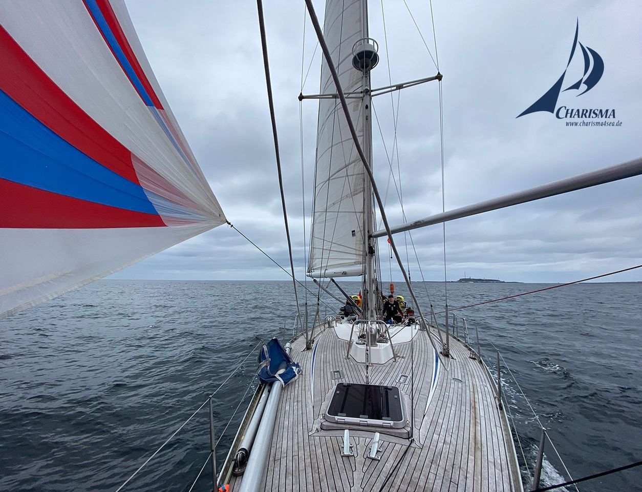 Wir gönnen uns einen kurzen Landgang und widmen uns einer zweiten Theorieeinheit – diesmal geht es ums Spinnakersegeln und die Grundlagen der Segelphysik. Nach einer kurzen Ruhephase legen wir am frühen Nachmittag 3 Stunden vor Niedrigwasser ab.