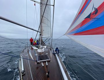 Wir segeln zunächst unter Schmetterlings-Segelstellung, die Genua ausgebaumt, das Großsegel mit einem Bullenstander gesichert. Mit Einsteuern in die Küstengewässer des Vestfjords dreht der Wind auf N. Bei diesigem Warmfrontwetter setzen wir unseren Leichtwind-Spinnaker ‚Runner‘ und segeln bei leichter Brise aufmerksam nach dem Wind. Am Nachmittag schläft der Wind ein, wir setzen unsere Fahrt bei aufklarendem Wetter unter Motor fort.