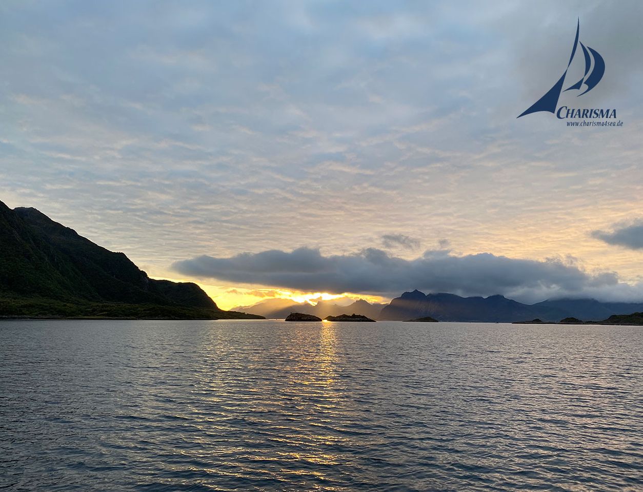 Die Route führt mit westlichem Verlauf in die Schärengewässer: Offersøya Stb, LF Smitskgt Bb, mit Kurs WNW steuern wir durch das Fahrwasser Smitskjaerleia der grandiosen Kulisse der Lofoten entgegen. Am Abend entwickelt sich ein brillantes Licht, hervorgerufen durch das kräftige Sonnenlicht in der klaren Luft des Nordens. Dabei wechseln die Wolken-Lichtspiele vor den Bergen und der Steilküste. Wir steuern durch die Molldøra-Passage in das Abendlicht dem Hafen von Svolvaer entgegen.