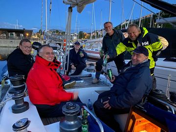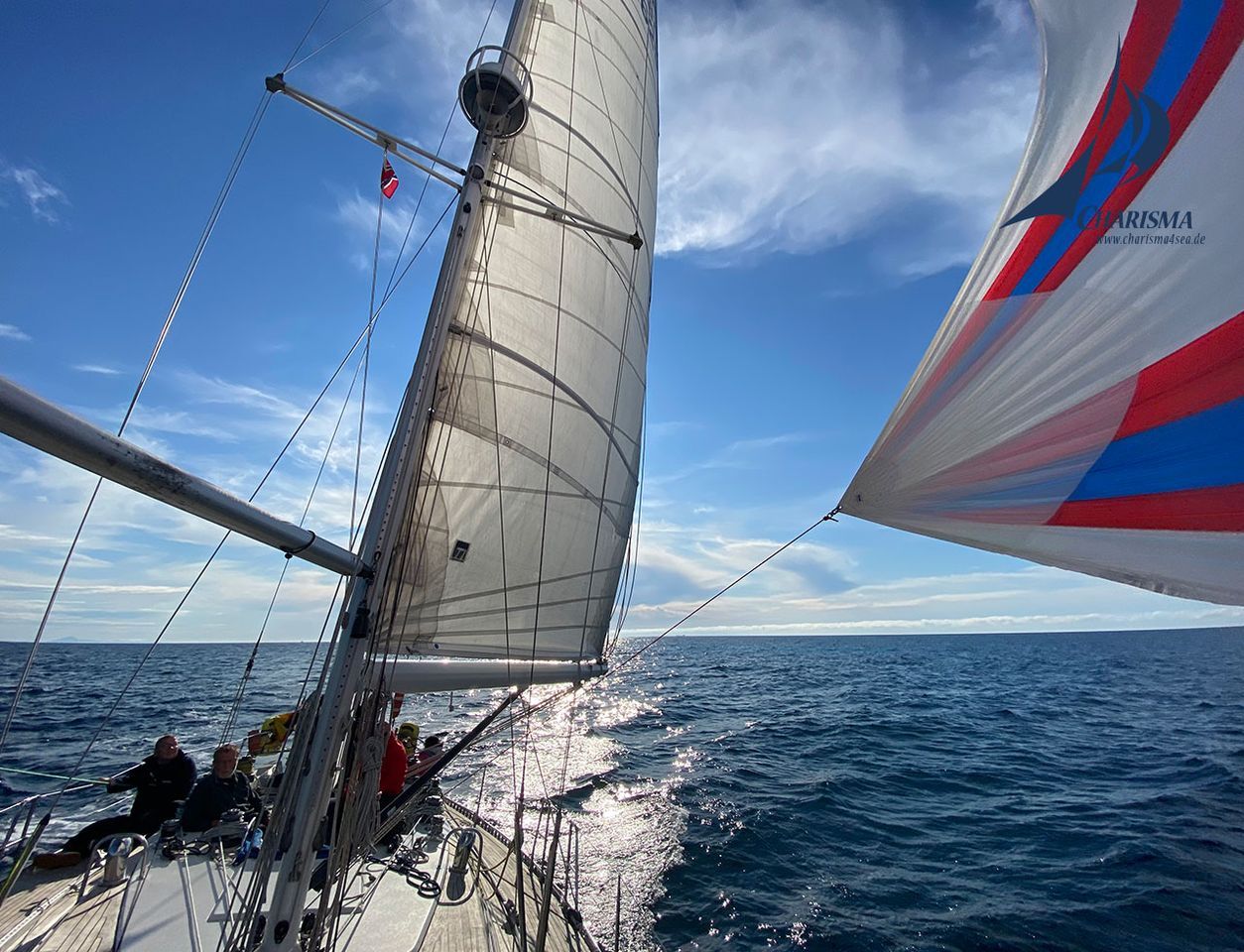 Als CHARISMA-Crew genießen wir den Anlegedrink im Cockpit. Um Mitternacht nehmen wir das Dinner im gemütlichen Salon ein.