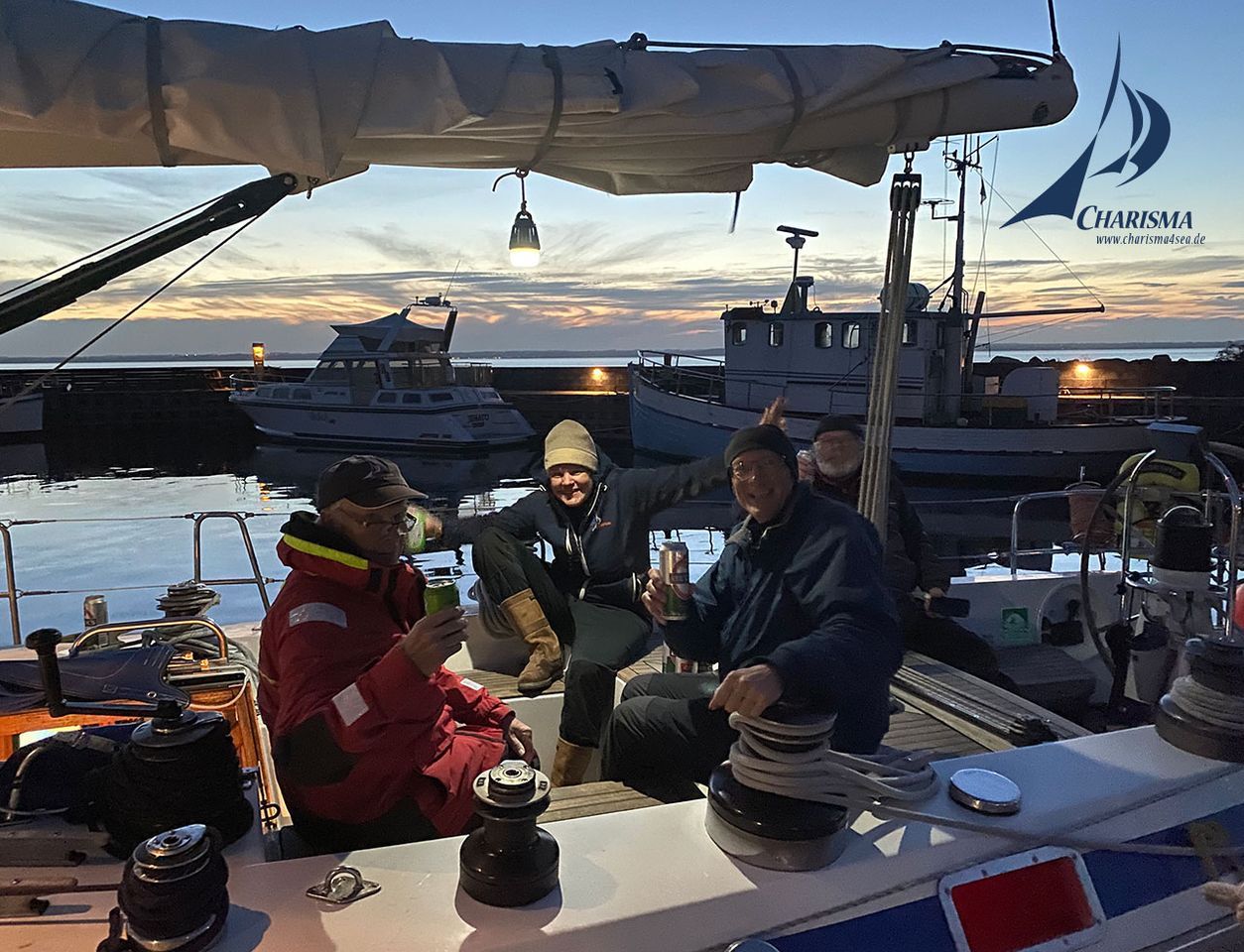 Bei aufkommenden W-SW 2-3 segeln wir unter Genua III und Großseegel in einen schönen Sonnaufgang – es entwickelt sich ein herrlicher Segelvormittag und strahlend blauem Himmel. Wir lassen die Insel Hjelm Steuerbord liegen und passieren das Samsø-E Flak.