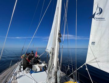Das Profil der Segel steht bei 60° zum Wind. Bei schönstem Wetter gleitet die SY CHARISMA in ölglatter See mit Kurs ENE durch den Rigaischen Meerbusen – ein Genuss! Am Nachmittag steuern wir den Hafen von Kihnu unter Motor an und machen an einem Schwimmsteg fest – Distanz 36 sm.
