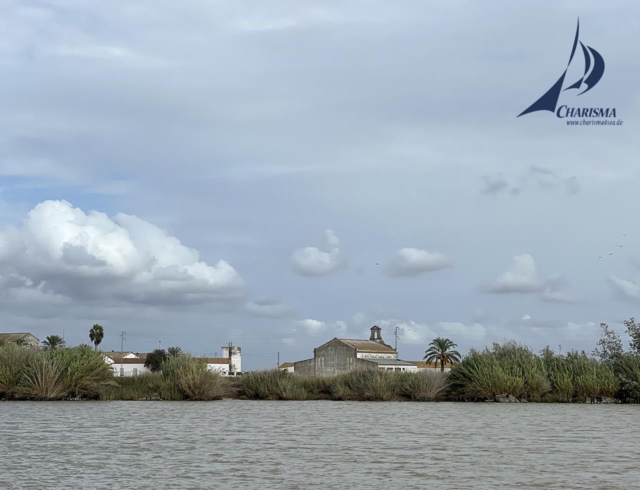 Das Atlantik-Tief schwächt sich langsam ab und führt an seinem südlichen Rand zu leichten SW-Wind. Am Morgen legen wir erneut in der Dunkelheit ab. Wir segeln Kurs WNW und passieren den Leuchtturm von Chipiona bei Sonnenaufgang. Bei abflauendem Wind bergen wir die Segel und steuern gemäß dem betonnten Fahrwasser mit auflaufendem Gezeitenstrom in den Fluss.