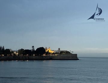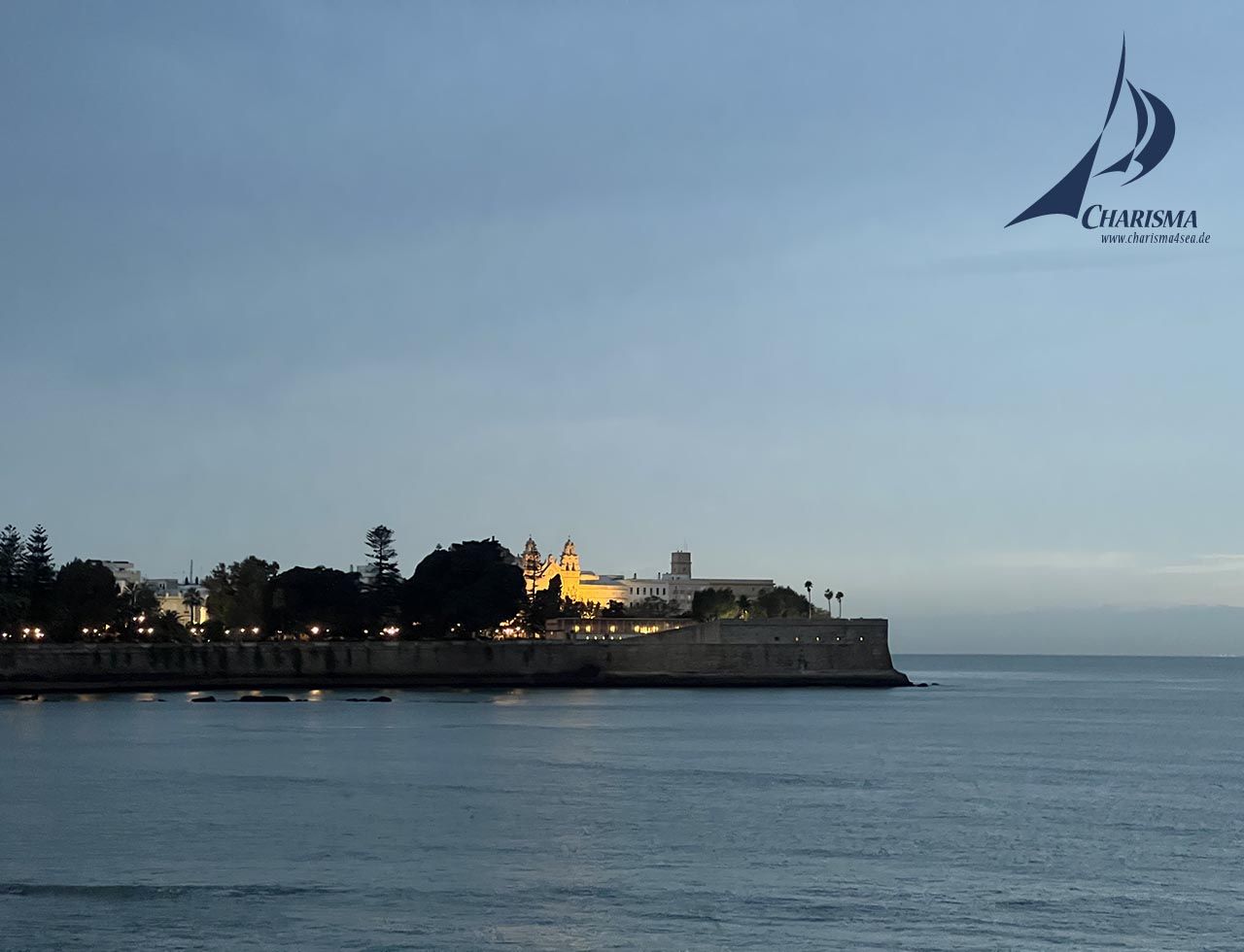 Die westwärts setzende Gezeitenströmung beginnt bei HW-Gibraltar + 3 h. Wir steuern in der Dunkelheit mit aufmerksamer Navigation nach Sicht sowie Leuchtfeuern und passieren die beleuchteten Ankerlieger. Mit Kurs WSW steuern wir parallel zur Küste Andalusiens und erleben fluoreszierendes Wasser – ein tolles Schauspiel, wie die SY Charisma die reflektierenden Wellen wegschiebt. In der Morgendämmerung passieren wir das Leuchtfeuer von Tarifa, neuer Kurs WNW.
