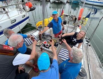 Mit dem Anleger im Cockpit lassen wir die Segelerlebnisse Revue passieren. Am Abend schlendern wir in diesig-nebliger er abendlicher Stimmung durch Lagos und gehen am Abschlussabend in einem Restaurant mit traditioneller Küche essen. In unserem Kielwasser liegen seit dem Ablegen von Lissabon 633 sm und ein rundum gelungener Törn.