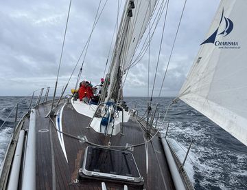 Im Für die Nachtfahrt legen wir ein überlappendes Wachsystem fest (3 Stunden Wache, jeweils 1,5 Stunden mit dem ersten und zweiten Wachpartner/in), das von der Crew routiniert umgesetzt wird. In den Morgenstunden lassen die Windbedingungen nach, da wir vom Wettergeschehen des Tiefs Kurs Hochdruckgebiet segeln.
