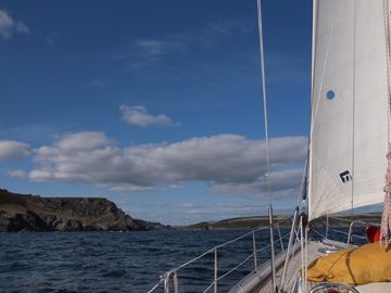 Von Plymouth segeln wir unter Spinnaker 25 sm nach Salcombe, einem pittoresk gelegenen Städtchen in einer Flussmündung. Die Bucht ist gesäumt von hellem Sandstrand. Am Ufer stehen Villen mit südlichem Flair und Gärten, deren Palmen-Vegetation dem milden Klima des Golfstroms Tribut zollt.