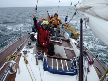 Nach einer zweistündigen Flussfahrt bei Sonnenschein und leichter Brise entlädt sich keine 10 Minuten vor unserem Anlegemanöver eine Gewitterwolke, die Ihresgleichen sucht. Aus dem Nichts kommen Sturmböen bis zu 50 kn auf uns niedergeschossen, strömender Regen prasselt uns waagerecht ins Gesicht und das Wasser des beschaulichen Naturhafens brodelt und schäumt wie in einem Kochtopf. Mit Mühe hält Constantin die Yacht dank seiner großen Erfahrung auf engstem Manövrierraum unter Kontrolle. Am Außensteg der Hafenanlage reißt sich eine Yacht los, nachdem sich die nicht richtig gesicherte Genua entrollt und eine Kettenreaktion auslöst.