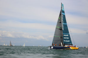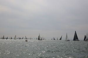 Der Start zum Rolex Fastnet Race 2015 ist durch Flaute geprägt. Wenigstens der Gezeitenstrom beginnt im Solent ablaufend in südwestliche Richtung zu setzen, so dass das Regattafeld langsam in Bewegung kommt. Auf der Kreuz muss man bei den Schiffsbegegnungen abwägen, ob die Peilung steht und man den Kurs beibehält oder ausweicht...