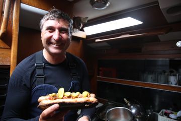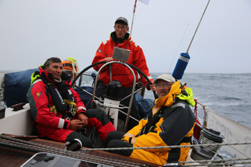 Nach einem entspannten Segeltag gestern, hatten wir auch eine entspannte Segelnacht. Das einzige Problem war, dass es stockdunkel war und deshalb ein Instrumentenflug. Die Schwierigkeit besteht dabei, das Boot nicht durch zu heftige Gegenlenkbewegungen aufzuschaukeln. Auf der anderen Seite muss man ständig auf höhere Atlantikwellen gefasst sein, die einem das Heck aushebeln und bei mangelnder Aufmerksamkeit das Boot erheblich drehen. Heute Morgen dann dichter Nebel - man merkt, wir nähern uns England. Außerdem gibt es noch zu berichten, dass Dirk uns gestern Abend das klassische Seemannsessen überhaupt gekocht hat: Labskaus. War lecker.
