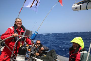 Elmo: Der heutige Sonntag lief sehr geruhsam ab. Wer keine Wache hatte schlief aus, draußen war es neblig,nicht kalt aber etwas feucht. Der Wind war auf 20 kn zurückgegangen und die hohen Wellen wurden seltener. Seitdem ist es so stabil geblieben. Heute Mittag schien kurz die Sonne, was ein paar von uns zum Waschen nutzten. Wir liegen weiterhin gut in unserer Zeitplanung, behalten aber den Flautenstreifen, der Dienstag oder Mittwoch wahrscheinlich unsere Bahn kreuzt, im Auge.