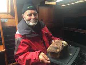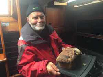 Elmo: Alleine Gerd war heute Morgen schon früh aufgestanden, denn er hatte sich vorgenommen, ein Brot zu backen. Nicht ganz einfach unter Bordbedingungen, die Backzeit betrug bei dem Herd auch locker zwei Stunden, aber das Ergebnis war köstlich. Es gab frisch gebackenes, noch lauwarmes Brot mit Marmelade zum späten Frühstück. Manche bevorzugten auch Wurst.