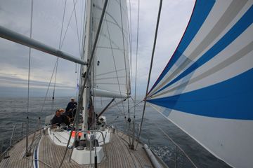 Elmo: Am gestrigen Nachmittag mussten wir aus dem Flautenfeld mit Geduld herausnavigieren. Es war weiter südlich als in den Gribdaten vorhergesagt. Also zogen wir weiter nach Süden aus dem Feld heraus, da unterhalb 41 Grad N mehr Wind vorhergesagt war. Das bestätigte sich auch. Wir versuchen diesen Wind in den nächsten Tagen zu nutzen, um weiter nach Osten zu kommen. Unser nächster Fixpunkt ist Point Alpha, das ist der westliche Punkt der Eis Ausschlusszone. Von da aus geht es zum östlichen Point Alpha und danach erst weiter nördlich.