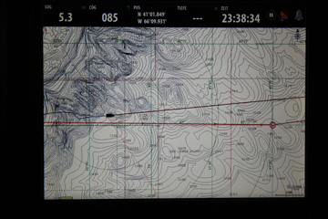 Ein paar Stunden später ist es jedoch soweit. Die Ausläufer der Front bringen frischen SW - Wind. Jetzt laufen wir wieder mit 6,5 kn in Richtung Osten.
