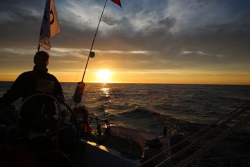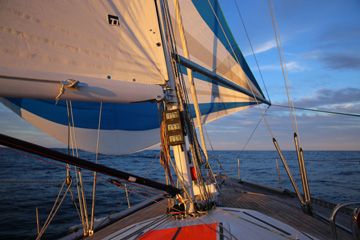 Elmo:Nachts unter Spinnaker segeln verlangt die volle Aufmerksamkeit des Steuermanns. Glücklicherweise haben wir aufgehenden Mond, fast Vollmond, sodass man die Umrisse des Spinnakers erkennt. In der Nacht sind wir in ein Schwachwindfeld gekommen, haben ein paar Mal hin und her getrimmt. Mit der aufgehenden Sonne kam dann wieder etwas Wind und wir konnten unseren Weg nach Osten weiter fortsetzen.