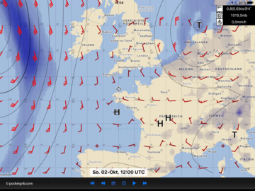 Die aus Westen anrückenden Tiefdruckgebiete und das Mega-Hoch über Skandinavien mit 1045 hPa halten die SY Charisma weiter in Atem.