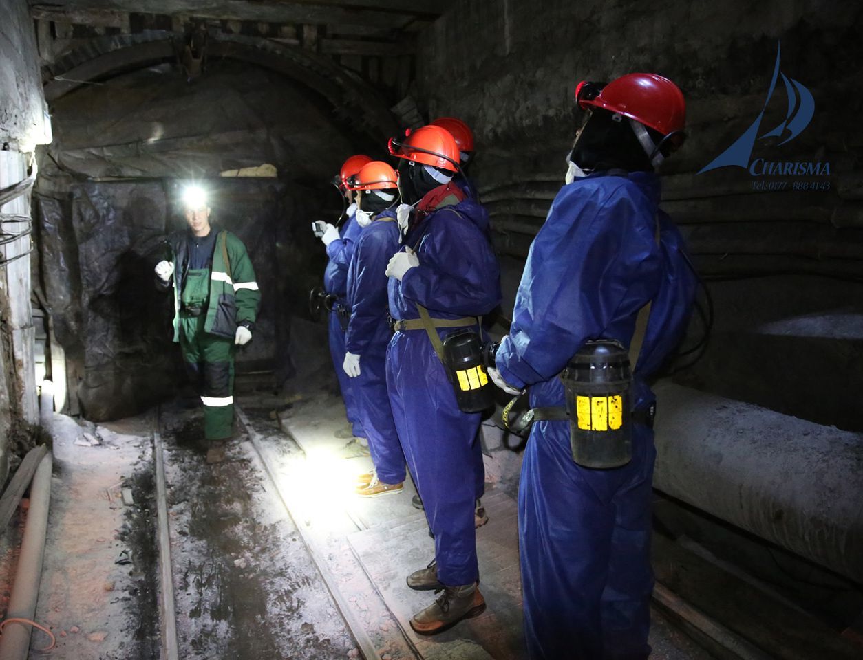 Wir werden mit Helm, Stirnlampe, Atemmaske und Selbstretter (für den absoluten Notfall) ausgerüstet. Da die Kohleflöze in Svalbard dicht an der Erdoberfläche liegen, müssen wir nicht wirklich tief Untertage fahren. Die Infrastruktur der Anlage ist quasi vor den Berg gebaut. Auf abenteuerlichen Wegen folgen wir der Kohle vom Flöz über die Waschanlage und den Kohlewagon bis zur Lagerstätte am Hafen.
