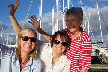 Die gesamte Crew des Atlantik-Ost Törns reist bereits am Freitagabend an. Die Email mit der Crewliste ist bei manchem nicht angekommen. Und so macht unser Mitsgeler Peter große Augen, als er realisiert, dass er mit drei Mädels über den Atlantik segelt. Nach dem zweiten Portwein entfährt es ihm: Drei Frauen, der Skipper und ich - das ist ja ein Ding!