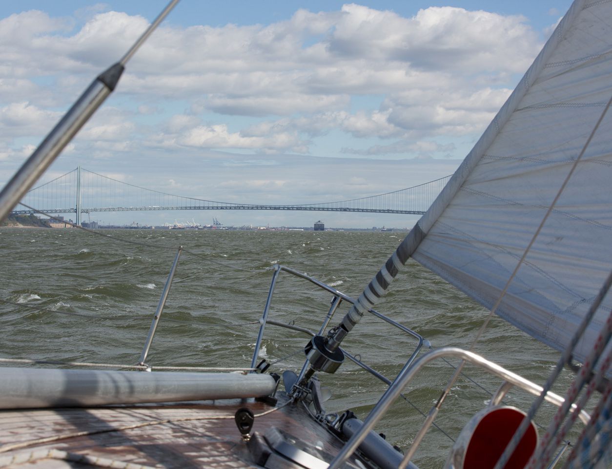 Die Ansteuerung von New York gestaltet sich in diesem Jahr als echte Herausforderung. Die Tide setzt im Endstadium ihres Intervalls mit starkem Gezeitenstrom gegen uns. Bei zunehmendem Gegenwind von NW 7 machen wir unter Motor zeitweise nur noch 1 kn Fahrt über Grund.