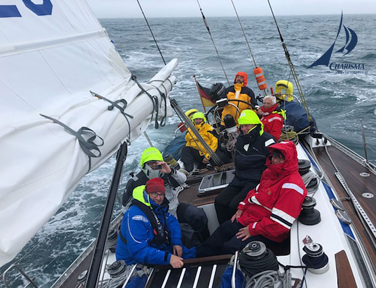 Nach der Passage setzen wir bei W 5 Bft. die Genua III und das Großsegel ins dritte Reff. Die weitere Route führt uns entlang der Nordküste der Bretagne gen WSW. Durch die Konstellation Wind gegen Strom baut sich eine ansehnliche Wellen auf. Das Deck wird gewaschen. Die Crew rotiert ihre Positionen und optimiert das Handling aufmerksamer Seemannschaft. Im Tagesverlauf lässt der Wind allmählich nach, wir reffen sukzessive aus. Am frühen Abend erreichen wir bei Niedrigwasser die Kardinaltonne-W Libenter und steuern in das Fahrwasser nach L‘Aber Wrac'h.