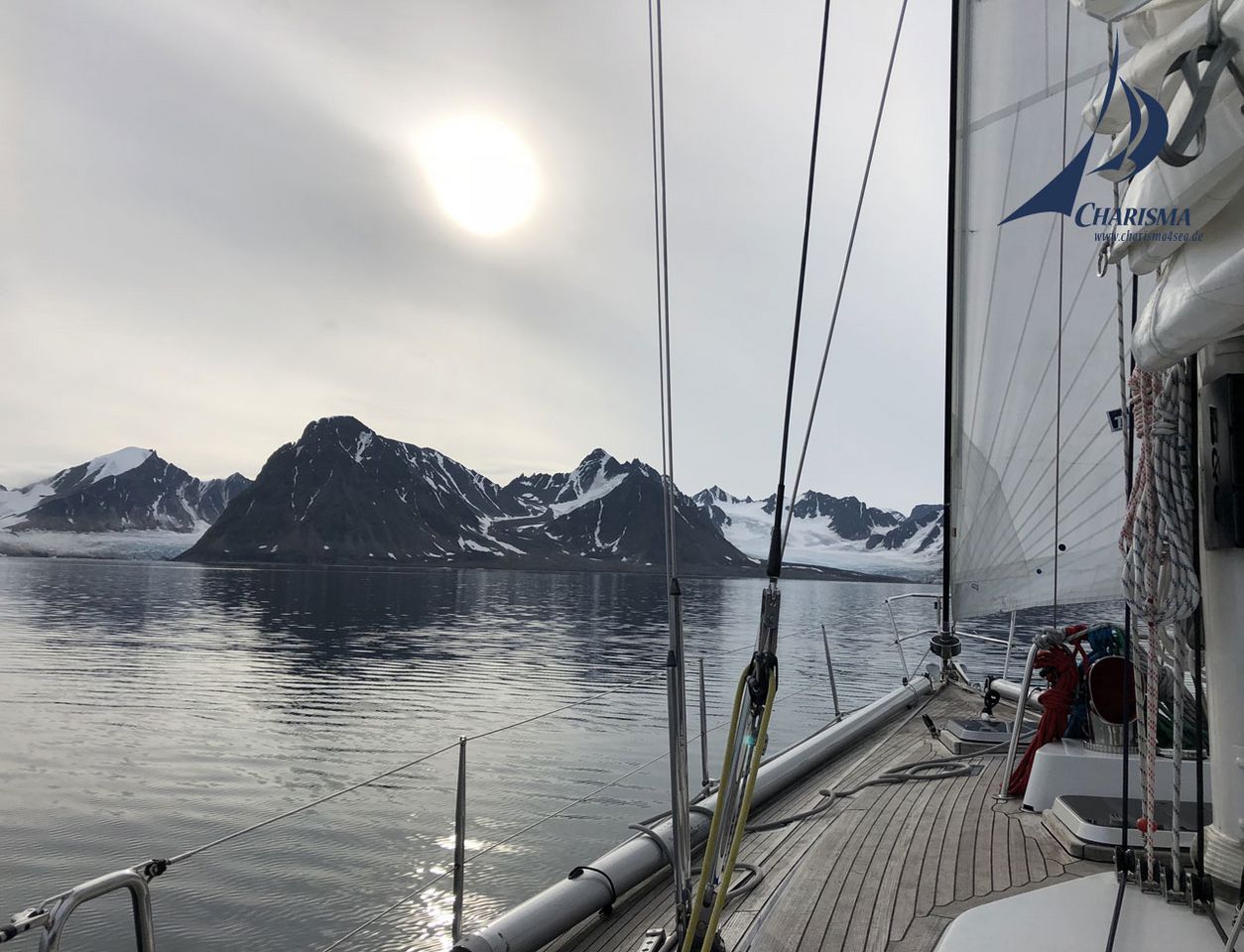 Mit der Insel Amsterdamöya haben wir den nördlichsten Punkt des West-Spitzbergen Törns erreicht. Ab jetzt heißt es wieder Kurs Süd. Wir holen den Anker auf und steuern bei einer leichten Nord-Brise unter Genua Richtung Smeerenburgbreen.
